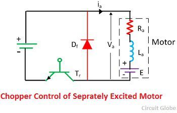 At t = ton, Tr is turned off. Motor current freewheels through diode Df and motor terminal voltage is zero during interval ton≤ t ≤ T. Motor operation during this interval is known as freewheeling interval and is described by