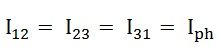 As in the balanced system the three-phase current I12, I23 and I31 are equal in magnitude but are displaced from one another by 120° electrical.