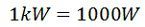 Thus, the power consumed in an electrical circuit is said to one watt if one ampere current flows through the circuit when a potential difference of 1 volt is applied across it.The bigger unit of electrical power is the kilowatt (kW), it is usually used in the power system![]()