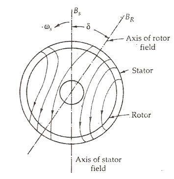 When supply is given to the stator, a rotating magnetic field is produced. This magnetic field magnetizes the rotor ring and induces a pole within it. Due to the hysteresis loss in the rotor, the induced rotor flux lags behind the rotating stator flux. The angle δ between the stator magnetic field BS and the rotor magnetic field BR is responsible for the production of the torque. The angle δ depends on the shape of the hysteresis loop and not on the frequency.