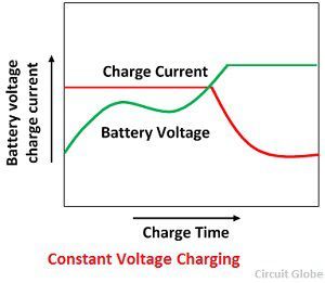 In this method, the charging voltage is kept constant throughout the charging process. The charging current is high in the beginning when the battery is in the discharge condition. The current is gradually dropping off as the battery picks up charge resulting in increase back emf.