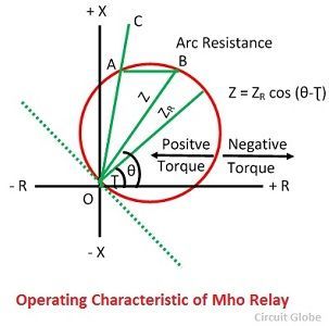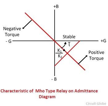The relay operates when the impedance seen by the relay within the circle. The operating characteristic showed that circle passes through the origin, which makes the relay naturally directional. The relay because of its naturally directional characteristic requires only one pair of contacts which makes it fast tripping for fault clearance and reduces the VA burdens on the current transformer.