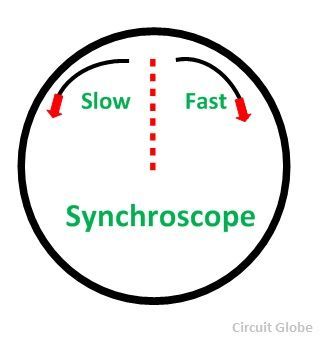 The scale of the Synchroscope marks with two arrows which indicate the direction of rotation of the pointer. The arrow indicates the clockwise and the anti-clockwise direction of the pointer. The clockwise arrows show too fast movement and the anti-clockwise direction shows slow rotation of the incoming machine.