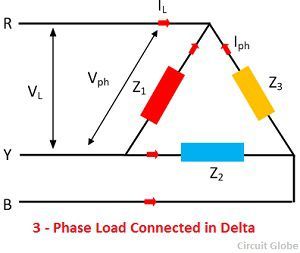 The loads in the three-phase system may also connect in the star or delta. The three phase loads connected in the delta and star is shown in the figure below.