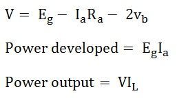If the brush contact drop is included, the terminal voltage equation is written as:
