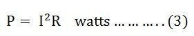 The collision of atoms with the free electrons causes the heat to develop when an electric current flows through any conductor or material. If a current of I ampere is passing through the conductor and the potential difference is V volts across the conductor, then the power absorbed by the resistor is given by the equation (3) shown below