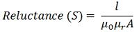 Its SI unit is AT / Wb (ampere-turns / Weber). The reluctance of the magnetic circuit is directly proportional to the length of the conductor and inversely proportional to the cross-section area of the conductor.