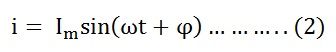 Putting the value of v and i from the equation (1) and (2) in p = vi